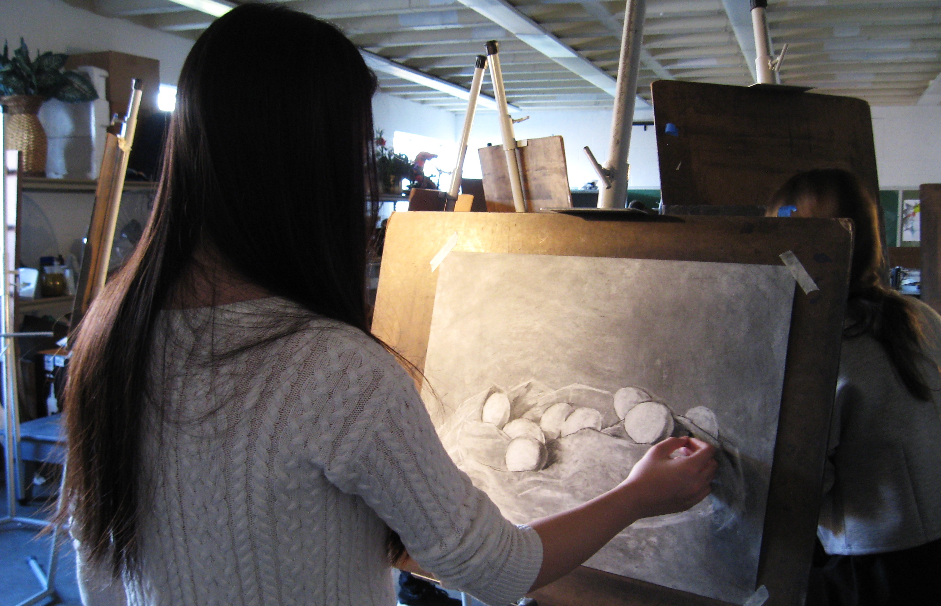 In this 6-week course, you will continue honing your skills at drawing realistically from direct observation of the world around us. We’ll practice drawing ordinary objects, still-life arrangements, rooms / hallways, plants, people, self-portraits, and maybe even outdoors (weather permitting). We’ll work in graphite pencil, charcoal, Conté, and chalk pastel.